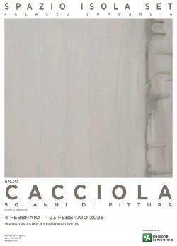 SPAZIO ISOLA SET - PALAZZO LOMBARDIA La mostra, a cura di Alberto Fiz, ripercorre l'indagine di Enzo Cacciola (Arenzano, 1945) dal 1970 a oggi attraverso 49 opere tra cui molti lavori monumentali che testimoniano la coerenza radicale di una ricerca dove la pittura si emancipa da ogni forma di edonismo o compiacimento formale per diventare essa stesso luogo di verifica.